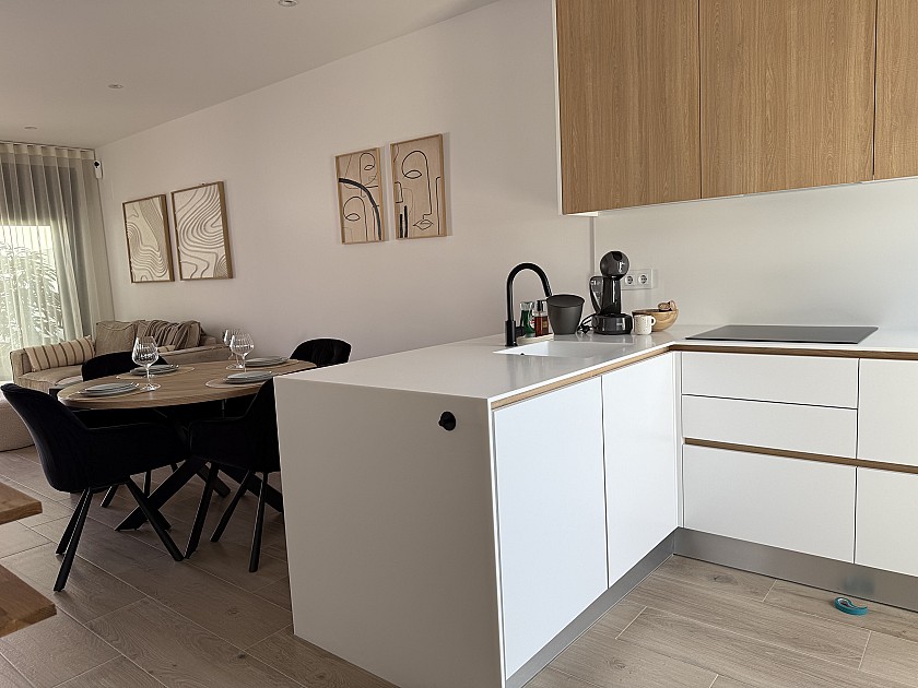 Das gemütliche Wohnzimmer mit Smart TV und kostenlosem WLAN geht über in eine voll ausgestattete Küche, u.a. mit Geschirrspüler, Backofen, Mikrowelle, Kühlschrank, Gefrierschrank, Dolce Gusto Kaffeemaschine und vielem mehr.