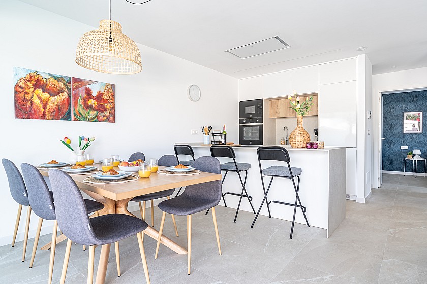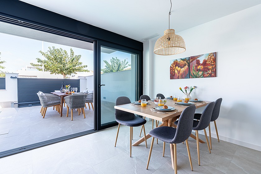 This contemporary holiday home is situated in a quiet residential street with open views, just a short walk from the charming centre of San Pedro del Pinatar. Here you’ll find cosy cafés, good restaurants, shops and lovely squares.