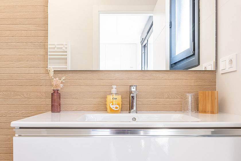 The ground floor has a spacious bedroom with double bed and a private bathroom with shower and toilet. Ideal for guests who prefer not to use stairs.