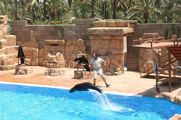 El nombre del zoológico es un poco engañoso, ya que se encuentra a 9 kilómetros de Elche y a sólo 4 kilómetros de Santa Pola.