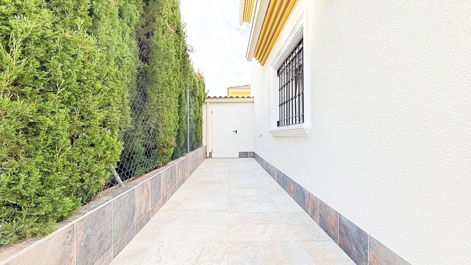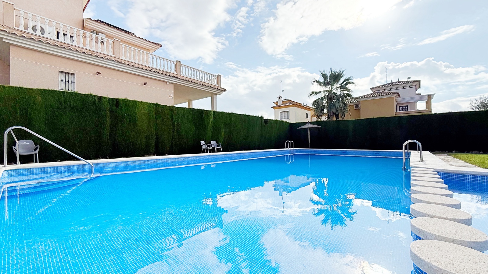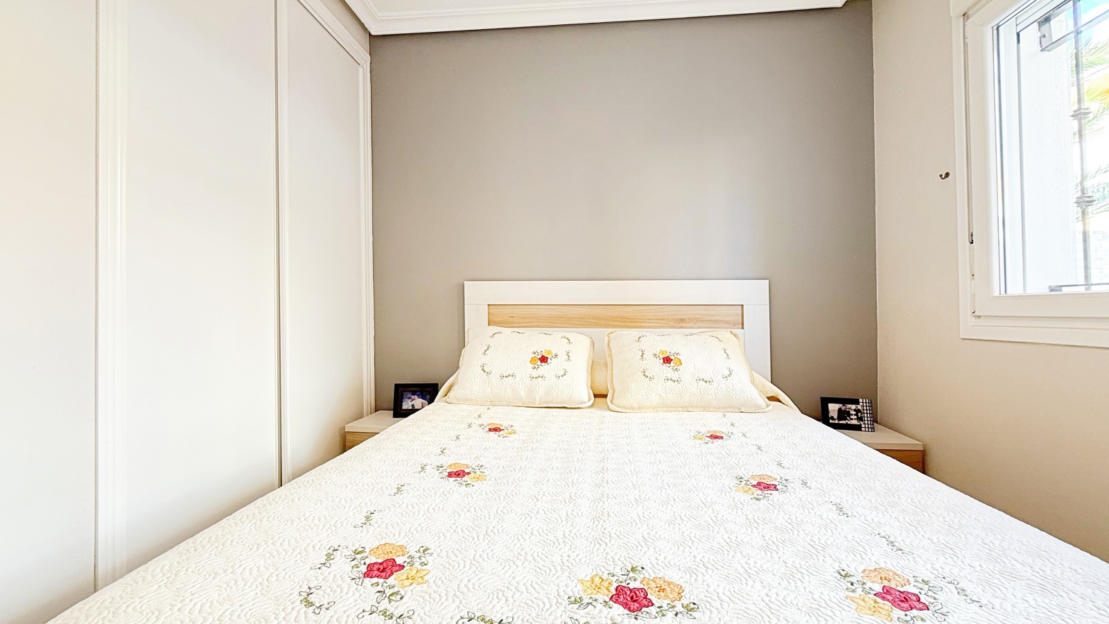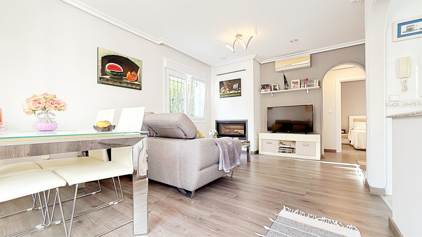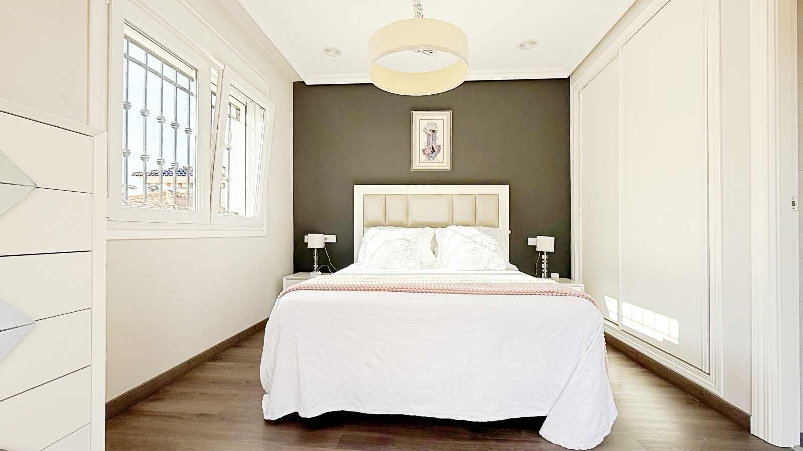 Esta magnífica villa independiente de 105 m², completamente reformada y distribuida en dos plantas, se encuentra en una urbanización privada con piscina comunitaria, a poca distancia de la playa.La planta baja ofrece un amplio y luminoso salón-comedor con cocina abierta, creando un ambiente moderno y funcional, ideal para disfrutar en familia o con amigos. En este mismo nivel se sitúan dos dormitorios de buen tamaño y un baño completo renovado, aportando practicidad y confort en el día a día.La primera planta está destinada al dormitorio principal, un espacio amplio y luminoso con baño en suite, que garantiza privacidad, independencia y comodidad.El interior de la vivienda ha sido renovado con materiales de alta calidad: suelos de tarima, ventanas Climalit con doble acristalamiento y sistema oscilobatiente, lo que asegura un excelente aislamiento térmico y acústico, además de aportar un estilo actual y acogedor a cada estancia.En el exterior, la propiedad dispone de aparcamiento privado y trastero, proporcionando comodidad y espacio extra de almacenamiento. La urbanización cerrada cuenta con zonas comunes y piscina comunitaria, ideales para disfrutar del clima mediterráneo durante los meses más cálidos.Su ubicación es otro de sus grandes atractivos: muy cerca de la playa y rodeada de todos los servicios esenciales, combina tranquilidad residencial con la comodidad de tener todo al alcance de la mano.Una vivienda lista para entrar a vivir, perfecta tanto como residencia habitual como como segunda vivienda vacacional.