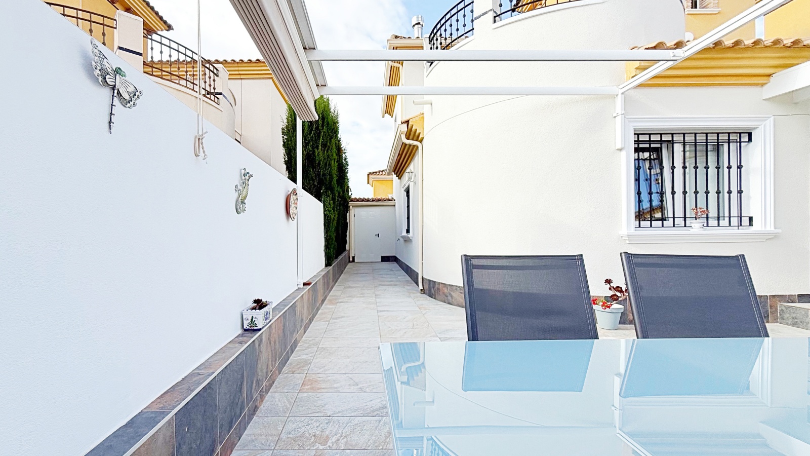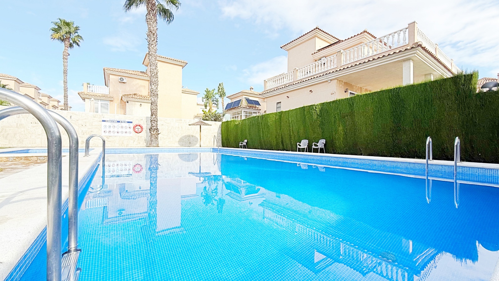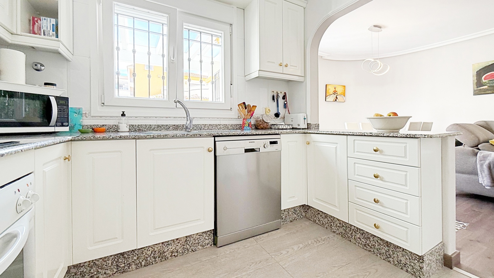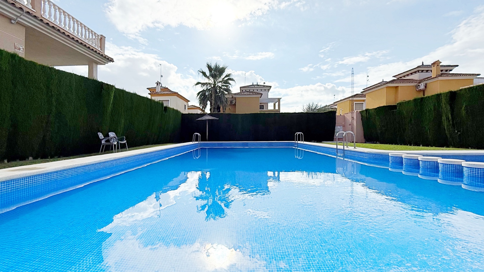 Esta magnífica villa independiente de 105 m², completamente reformada y distribuida en dos plantas, se encuentra en una urbanización privada con piscina comunitaria, a poca distancia de la playa.La planta baja ofrece un amplio y luminoso salón-comedor con cocina abierta, creando un ambiente moderno y funcional, ideal para disfrutar en familia o con amigos. En este mismo nivel se sitúan dos dormitorios de buen tamaño y un baño completo renovado, aportando practicidad y confort en el día a día.La primera planta está destinada al dormitorio principal, un espacio amplio y luminoso con baño en suite, que garantiza privacidad, independencia y comodidad.El interior de la vivienda ha sido renovado con materiales de alta calidad: suelos de tarima, ventanas Climalit con doble acristalamiento y sistema oscilobatiente, lo que asegura un excelente aislamiento térmico y acústico, además de aportar un estilo actual y acogedor a cada estancia.En el exterior, la propiedad dispone de aparcamiento privado y trastero, proporcionando comodidad y espacio extra de almacenamiento. La urbanización cerrada cuenta con zonas comunes y piscina comunitaria, ideales para disfrutar del clima mediterráneo durante los meses más cálidos.Su ubicación es otro de sus grandes atractivos: muy cerca de la playa y rodeada de todos los servicios esenciales, combina tranquilidad residencial con la comodidad de tener todo al alcance de la mano.Una vivienda lista para entrar a vivir, perfecta tanto como residencia habitual como como segunda vivienda vacacional.