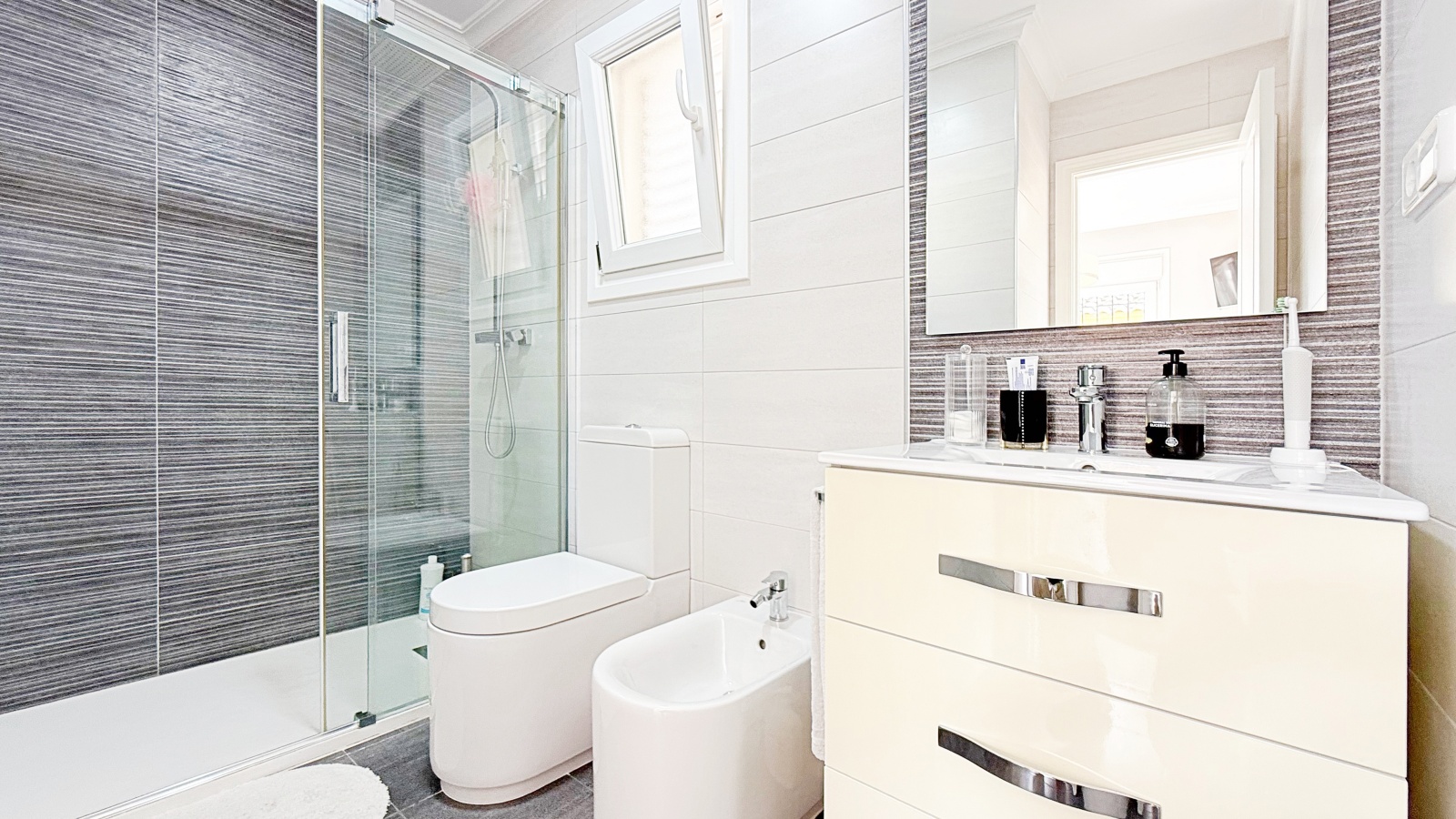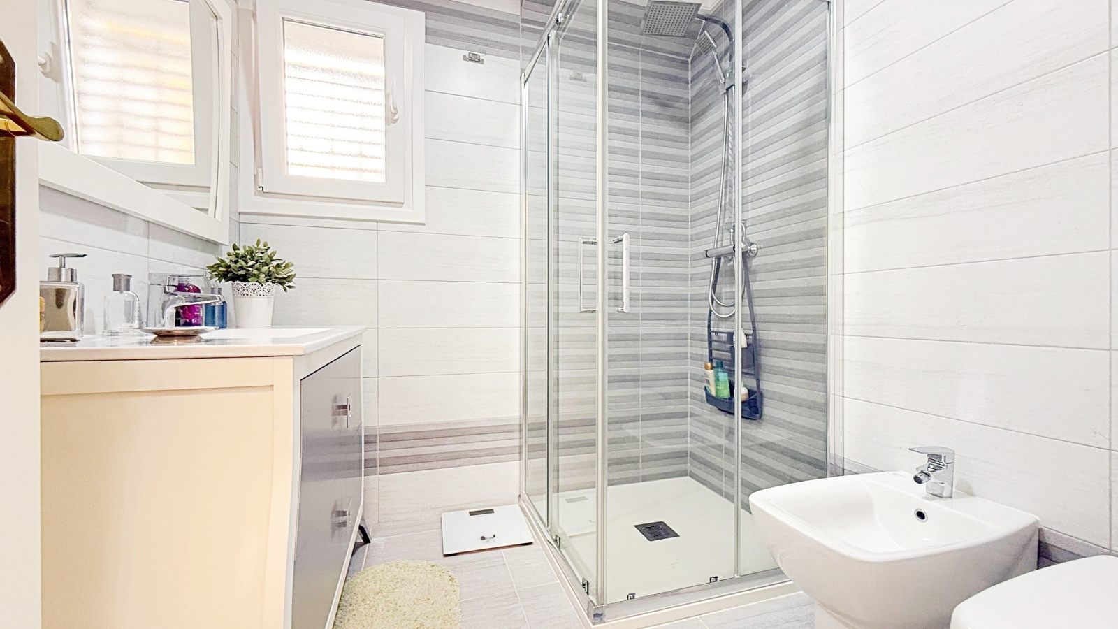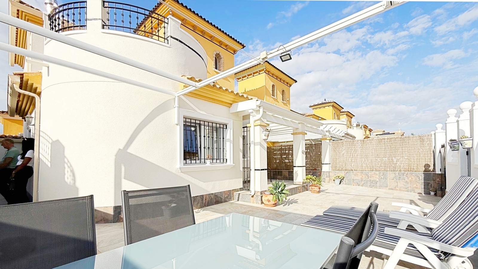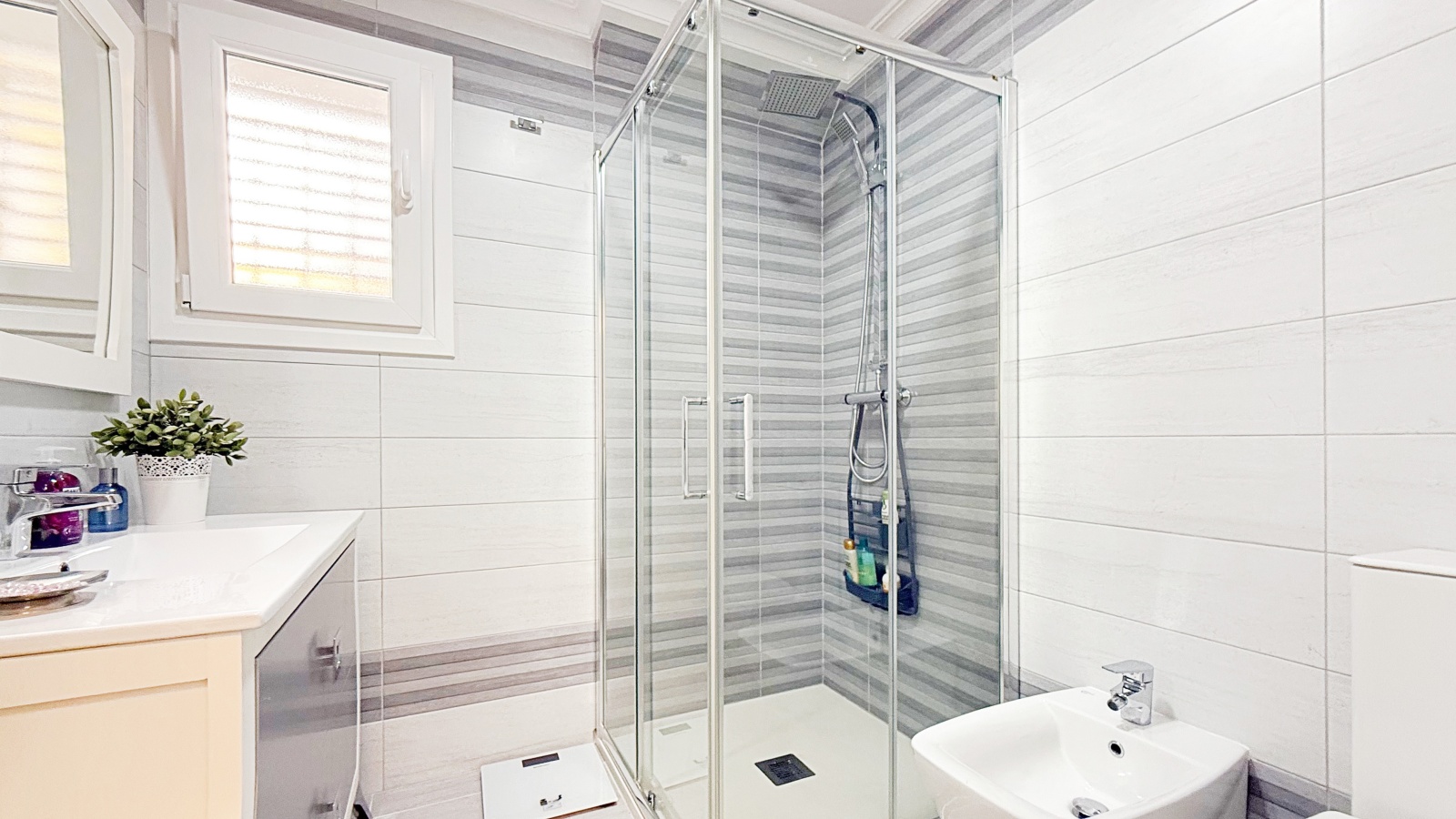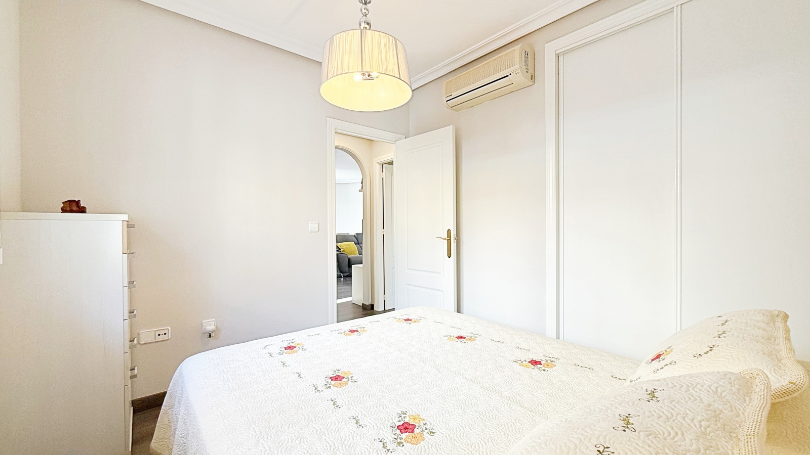 Esta magnífica villa independiente de 105 m², completamente reformada y distribuida en dos plantas, se encuentra en una urbanización privada con piscina comunitaria, a poca distancia de la playa.La planta baja ofrece un amplio y luminoso salón-comedor con cocina abierta, creando un ambiente moderno y funcional, ideal para disfrutar en familia o con amigos. En este mismo nivel se sitúan dos dormitorios de buen tamaño y un baño completo renovado, aportando practicidad y confort en el día a día.La primera planta está destinada al dormitorio principal, un espacio amplio y luminoso con baño en suite, que garantiza privacidad, independencia y comodidad.El interior de la vivienda ha sido renovado con materiales de alta calidad: suelos de tarima, ventanas Climalit con doble acristalamiento y sistema oscilobatiente, lo que asegura un excelente aislamiento térmico y acústico, además de aportar un estilo actual y acogedor a cada estancia.En el exterior, la propiedad dispone de aparcamiento privado y trastero, proporcionando comodidad y espacio extra de almacenamiento. La urbanización cerrada cuenta con zonas comunes y piscina comunitaria, ideales para disfrutar del clima mediterráneo durante los meses más cálidos.Su ubicación es otro de sus grandes atractivos: muy cerca de la playa y rodeada de todos los servicios esenciales, combina tranquilidad residencial con la comodidad de tener todo al alcance de la mano.Una vivienda lista para entrar a vivir, perfecta tanto como residencia habitual como como segunda vivienda vacacional.