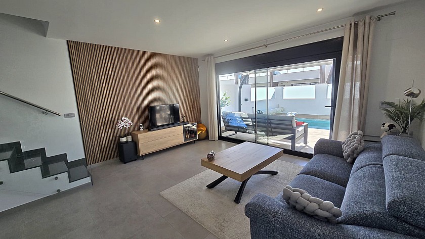 La villa cuenta con tres dormitorios cómodos y dos baños modernos. El luminoso salón de planta abierta se conecta de forma natural con el jardín, creando una perfecta armonía entre interior y exterior.