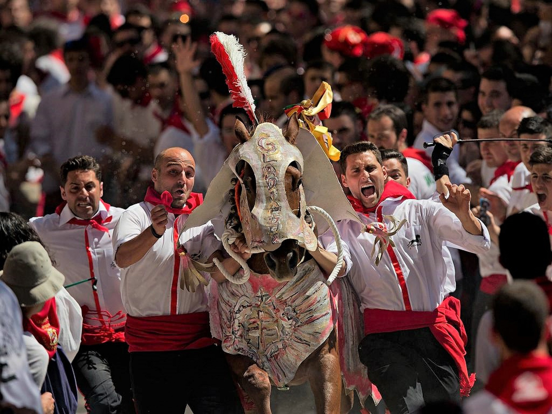 De reden voor die status ligt ten grondslag aan het merkwaardige feest van het 'Hollen met de wijnpaarden', dat jaarlijks in mei wordt gehouden. De kern van het feest is simpel. Zestig paarden met kannen met wijn en gehuld in geborduurde en anderszins opgesmukte mantels racen de heuvel op naar het stadje. Het is de bedoeling het trajekt zo snel mogelijk af te leggen. De race is niet zonder gevaar voor de toeschouwers, want soms gaan de paarden en hun begeleiders rakelings langs de verzamelde menigte. De snelste paarden en de mooist versierde ontvangen een prijs.