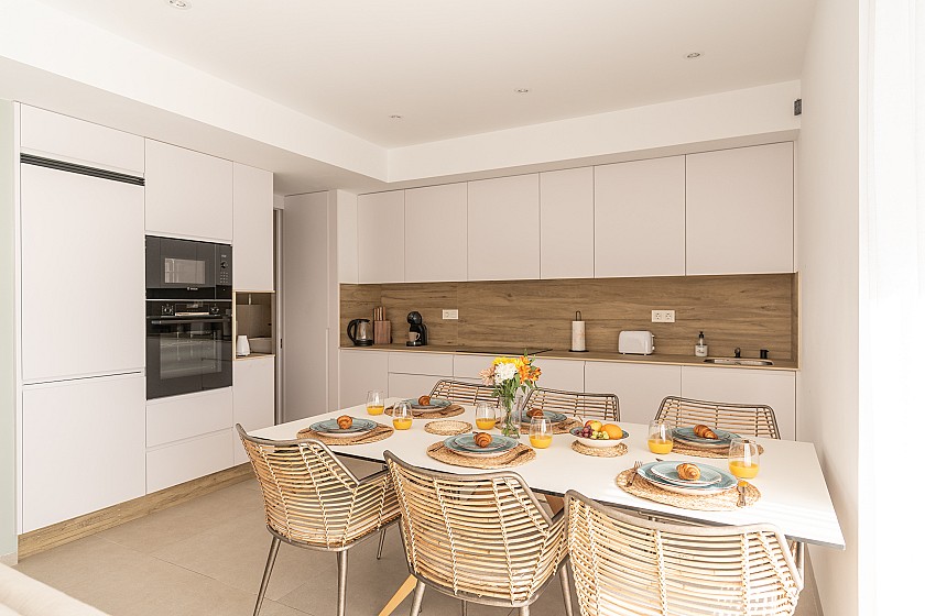 Binnen vind je een ruime, lichte living met grote schuifpuien en een moderne open keuken, volledig uitgerust met topapparatuur. De slaapkamers zijn royaal en voorzien van comfortabele boxspringbedden. Stijlvolle badkamers stralen pure hotelklasse uit met inloop- en regendouche.