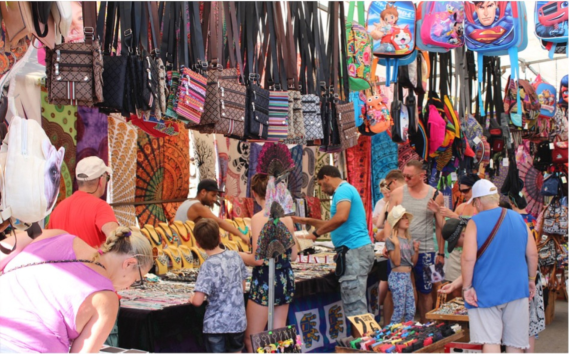 U vindt een groot aanbod van verschillende producten te koop op deze gezellige markt. Van kleding, schoenen, tassen en lederen producten tot beddengoed, handdoeken en andere huishoudelijke goederen zijn te vinden bij de kraampjes. Veel kraampjes bieden ook voedsel zoals fruit en groenten, ham en zelfs gebraden kip.
