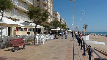 Dankzij de uitgestrektheid van de brede zandstranden hebben badgasten een ruime keus uit het soort strand dat zij verkiezen. Veruit het drukst is het zomers op de Playas La Roqueta en Playa Centre. Deze twee lappen strand grenzen aan het centrum en liggen direct langs de populaire promenade waar veel terrassen, bars en restaurants zijn. De wisselwerking tussen zonnebaden en een tapa of koud drankje binnen handbereik is uiteraard een belangrijke aantrekkingskracht. Vanwege die drukte is ook het voorzieningenniveau hoog met gemakkelijke bereikbaarheid voor minder validen, een speciale speelplaats voor kinderen, strandmeesters en een Rode Kruis hulppost.