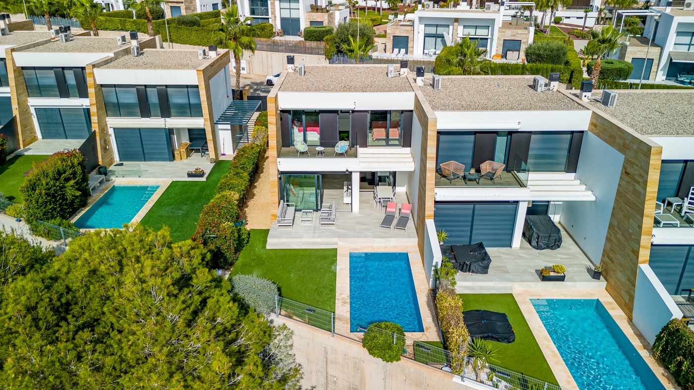 Luxe villa met panoramisch zeezicht en groene omgeving in Los Dolses Ontdek deze prachtige, zuidgerichte villa uit 2018 — een perfecte combinatie van stijl, comfort en luxe, gelegen op een royaal perceel van 304 m² met een woonoppervlakte van 126 m². Hier geniet u van adembenemend zeezicht, omringd door rust en natuur, en toch vlak bij bars, restaurants, apotheek en supermarkten. De villa beschikt over drie ruime slaapkamers en drie moderne badkamers, ideaal voor wie houdt van ruimte en elegantie. De lichte, open leefruimte sluit naadloos aan op de eetkamer en de moderne open keuken, volledig uitgerust met hoogwaardige materialen en slimme opbergruimte. Grote raampartijen zorgen voor overvloedig natuurlijk licht en creëren een harmonieuze overgang tussen binnen en buiten. De woning wordt volledig gemeubileerd verkocht. Voor optimaal comfort is de villa voorzien van gecentraliseerde airconditioning, elektrische zonneschermen, instapklaar en uitstekend onderhouden. Buiten wacht een verwarmd privézwembad met ruim zonneterras, waar u het hele jaar door kunt ontspannen en genieten van het uitzicht op zee. Op het eigen terrein is een parkeerplaats voorzien voor extra gemak en veiligheid. Gelegen in het populaire Los Dolses, op wandelafstand van alle voorzieningen, is dit de ideale woning voor wie op zoek is naar luxe, ruimte en een toplocatie aan de Costa Blanca. Gemeenschapskosten (VvE): €500/jaarOnroerendgoedbelasting (SUMA): €450/jaar Interesse of wilt u een bezichtiging plannen? Neem vandaag nog contact met ons op — deze villa zal u meteen overtuigen!